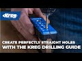 The Kreg Drilling Guide makes it easy to create perfectly straight holes without using a drill press. You can get precisely positioned holes with just a hand drill. Featuring six hardened steel drill guides—from 1/8" to 1/2"—that do the work of holding your drill in position for you. The Guide features an ergonomic design and Kreg GripMaxx™ material that ensure it stays in place as you use it, so your drill bit won’t wander off your mark as you start the hole. The Drilling Guide also automatically centers on the edge of 3/4"-wide and 1/2"-wide boards and plywood, so you can drill holes that are perpendicular to the edge and perfectly centered. Use the Drill Guide for all kinds of tasks – whether you need a hole for driving a screw, mounting hardware, helping create a dowel joint, and much more.