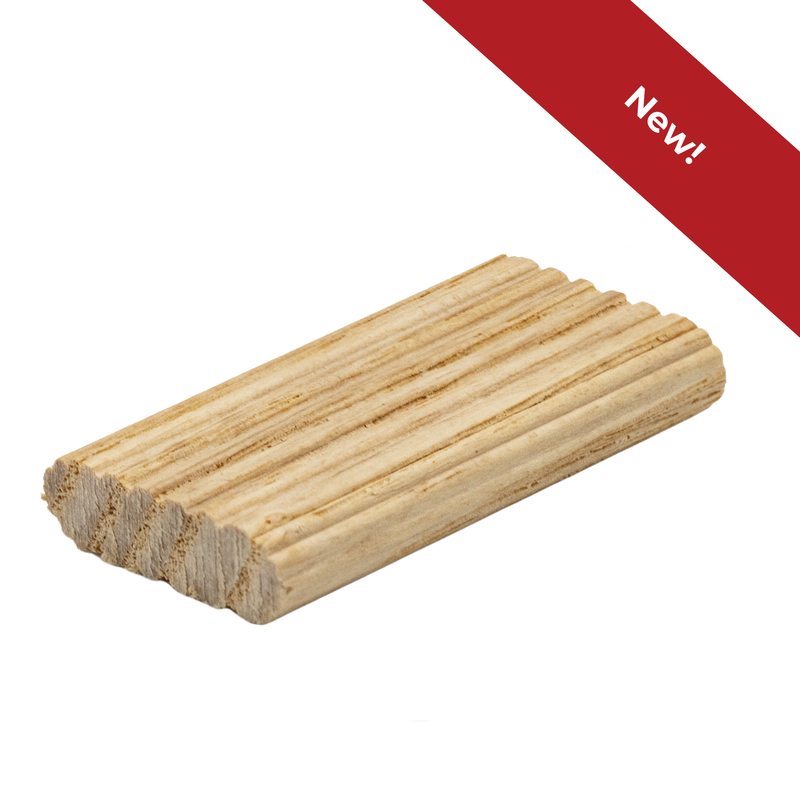 - Fluted for glue retention; approximately 1/16" shorter than the nominal length to allow space in the mortise for glue